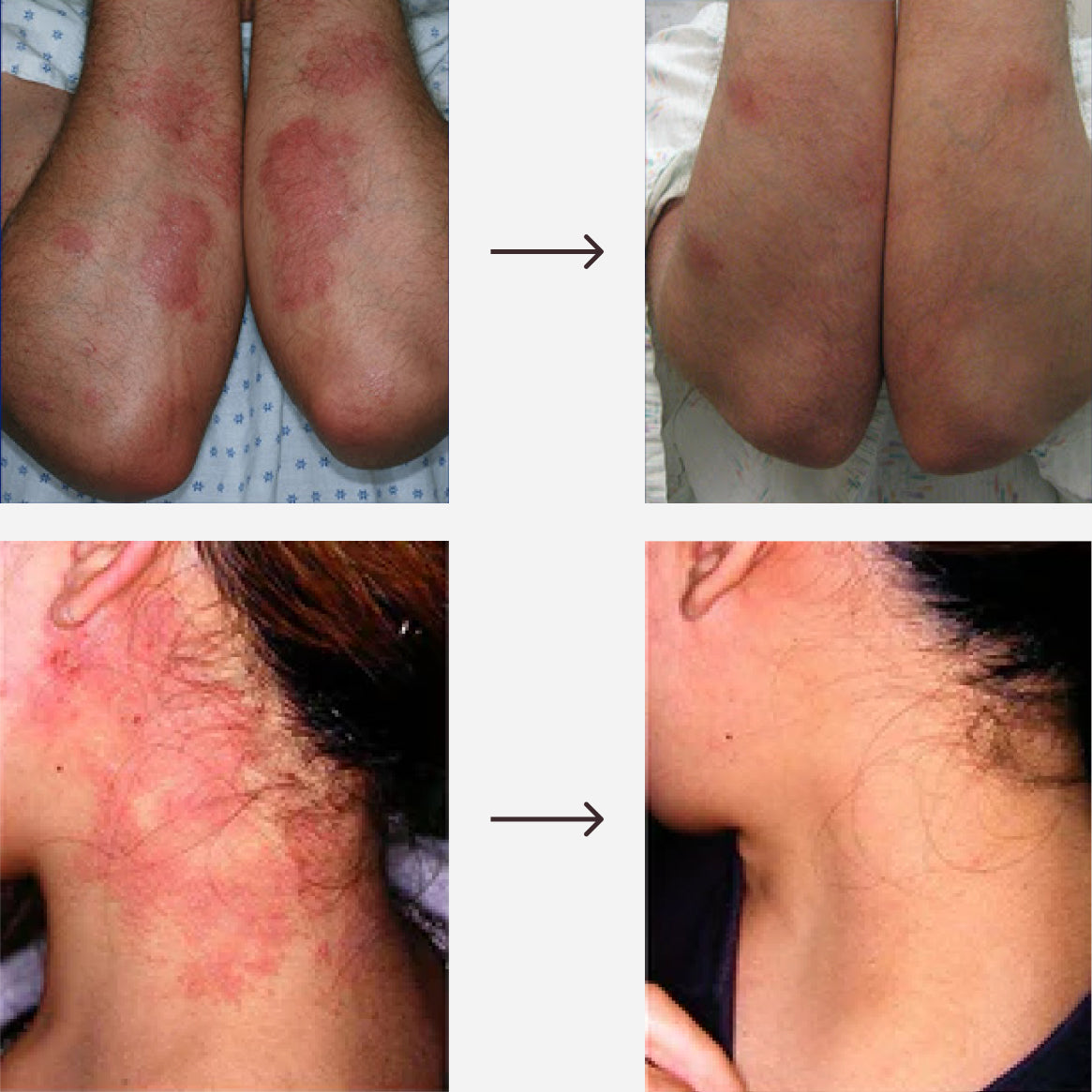 Our customers usually reported that their eczema or psoriasis were cleared up within 2-6 weeks.